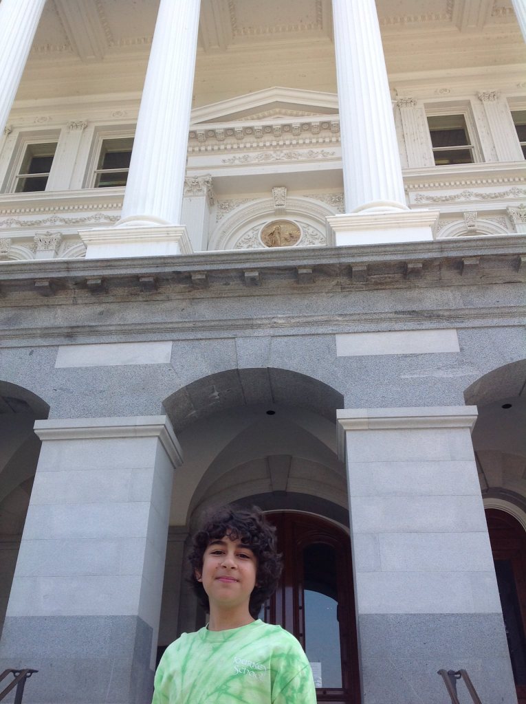 Noah in front of California State capitol with Decoding Dyslexia, advocating for the AB 1369 Dyslexia Bill, 2015